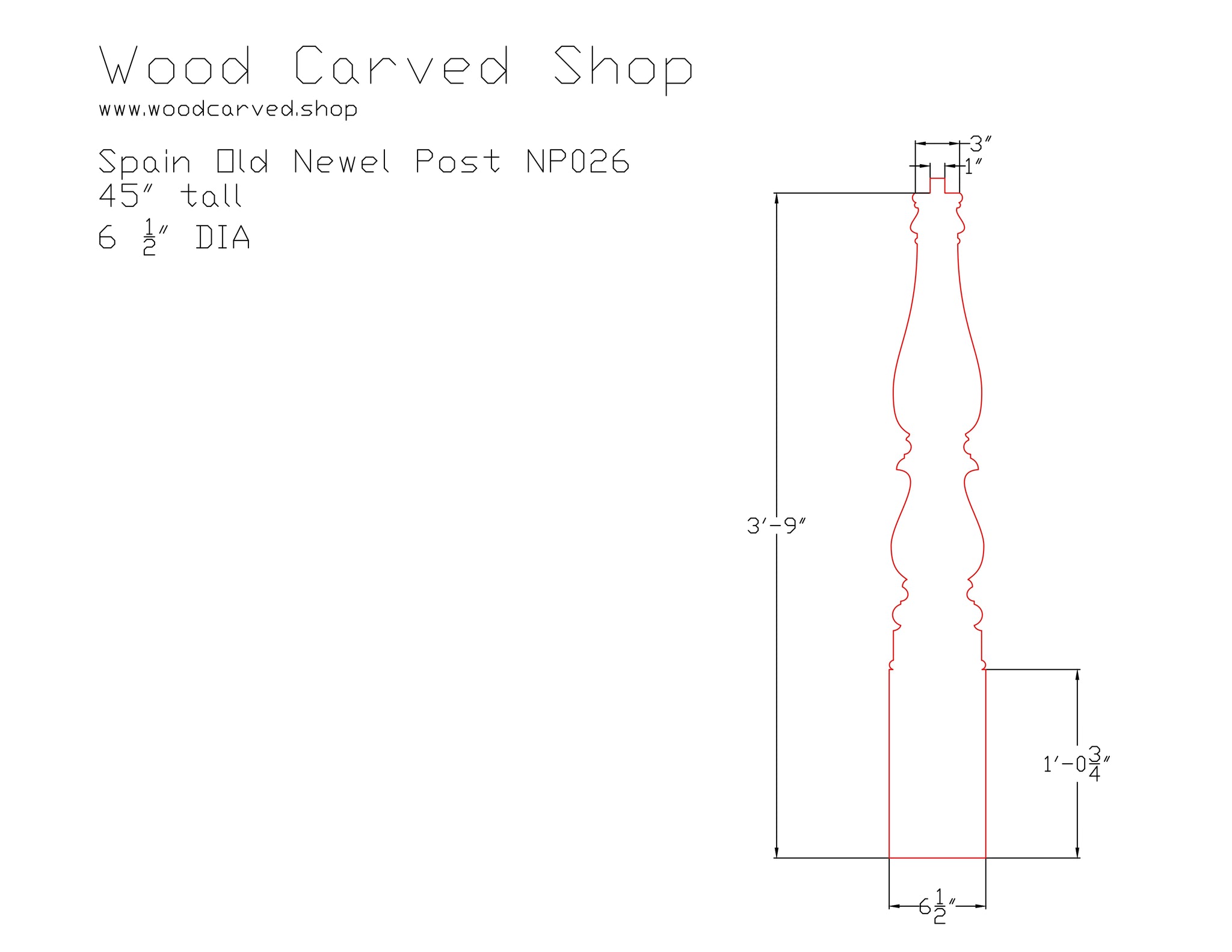 Inspired by timeless Spanish craftsmanship, the Spain old newel post NP026 boasts gracefully turned details and a robust, elegant design. A perfect choice to bring Old-World character and sophistication to your staircase.